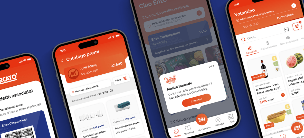 Dimar, storico player piemontese della GDO con oltre 300 punti vendita e parte del Gruppo Selex, ha scelto di digitalizzare i servizi di loyalty Mercatò. In un mercato in cui innovazione e omnicanalità sono fattori chiave, l’azienda ha voluto creare un touchpoint mobile che integrasse promozioni, raccolta punti e strumenti pratici per la spesa quotidiana. L’app MyMercatò nasce così con l’obiettivo di rafforzare la relazione con i clienti e offrire un’esperienza digitale coerente e coinvolgente.