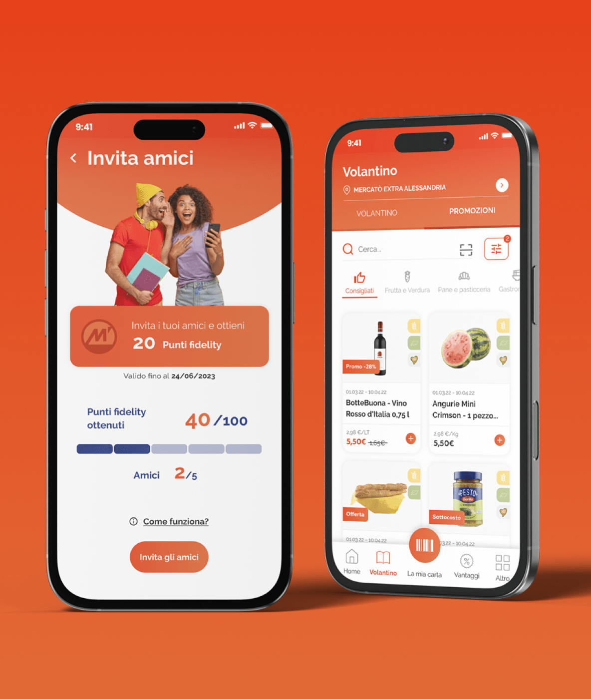 Con l’obiettivo di semplificare la spesa e rafforzare la loyalty, il progetto MyMercatò nasceva dalla necessità di integrare in un’unica app servizi diversi, garantendo fluidità, chiarezza e coerenza con l’identità del brand. La vera sfida era trasformare l’esperienza di spesa in un percorso digitale semplice, intuitivo e omnicanale, riducendo al minimo la complessità percepita e mettendo al centro le esigenze degli utenti.