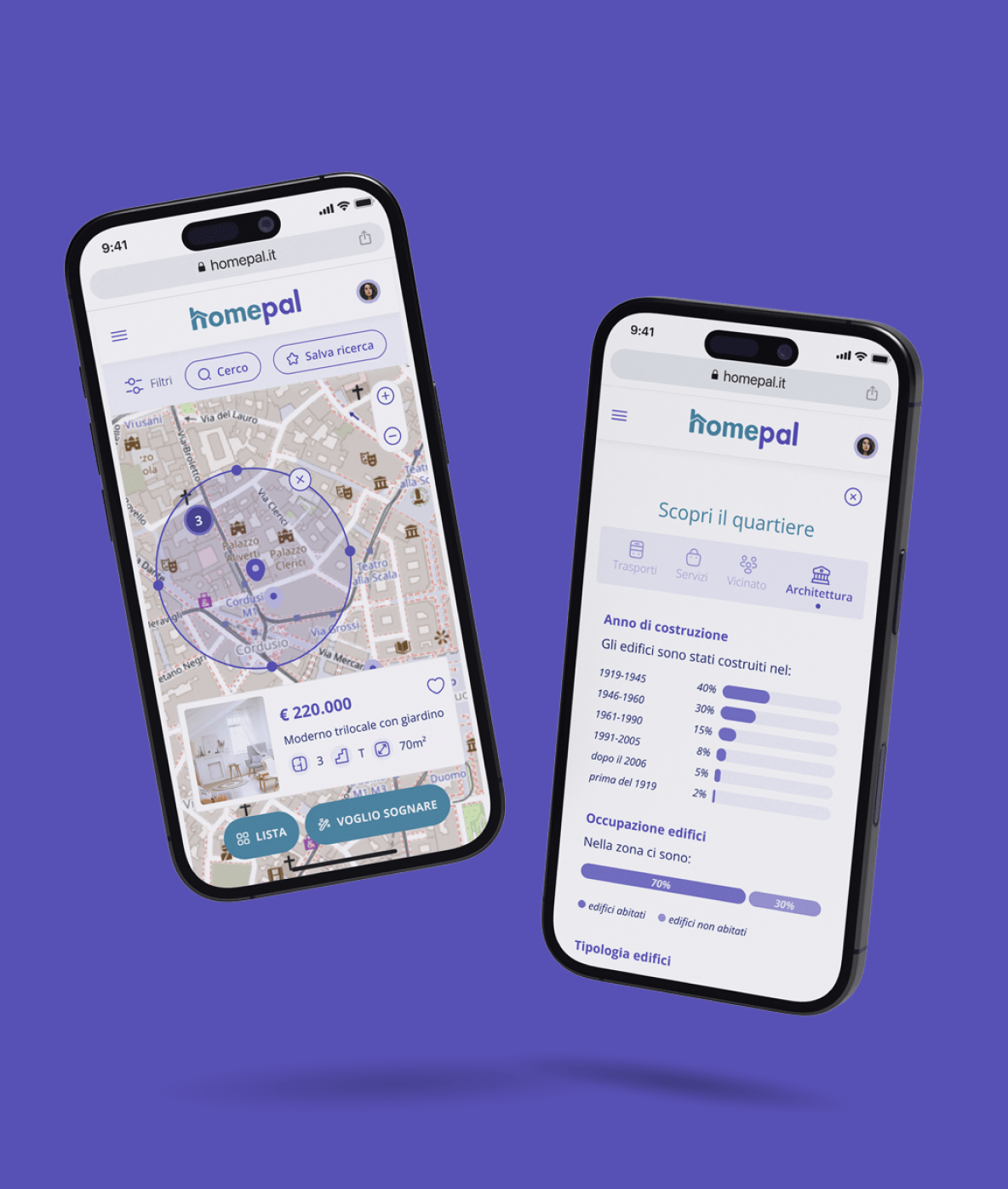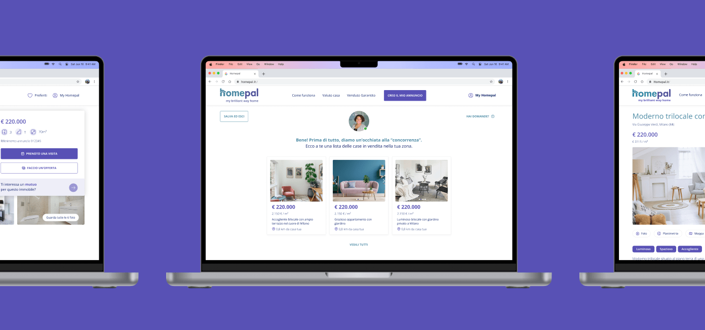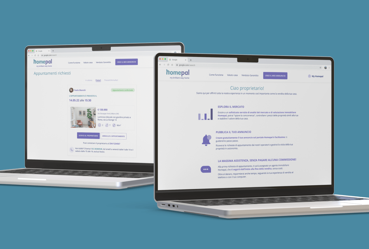 L’obiettivo del progetto era riprogettare l’esperienza utente e l’interfaccia del portale Homepal.it, valorizzando la nuova brand identity. Comprare e vendere casa è un processo complesso ed emotivo, perciò la sfida principale è stata aumentare il valore percepito del brand, creando un’interfaccia coinvolgente e user friendly. È stato necessario guidare i proprietari nell’inserimento degli annunci e supportare gli acquirenti nella ricerca, appuntamenti e conclusione delle trattative, rendendo l’esperienza digitale quanto più simile al supporto di un agente immobiliare reale.
