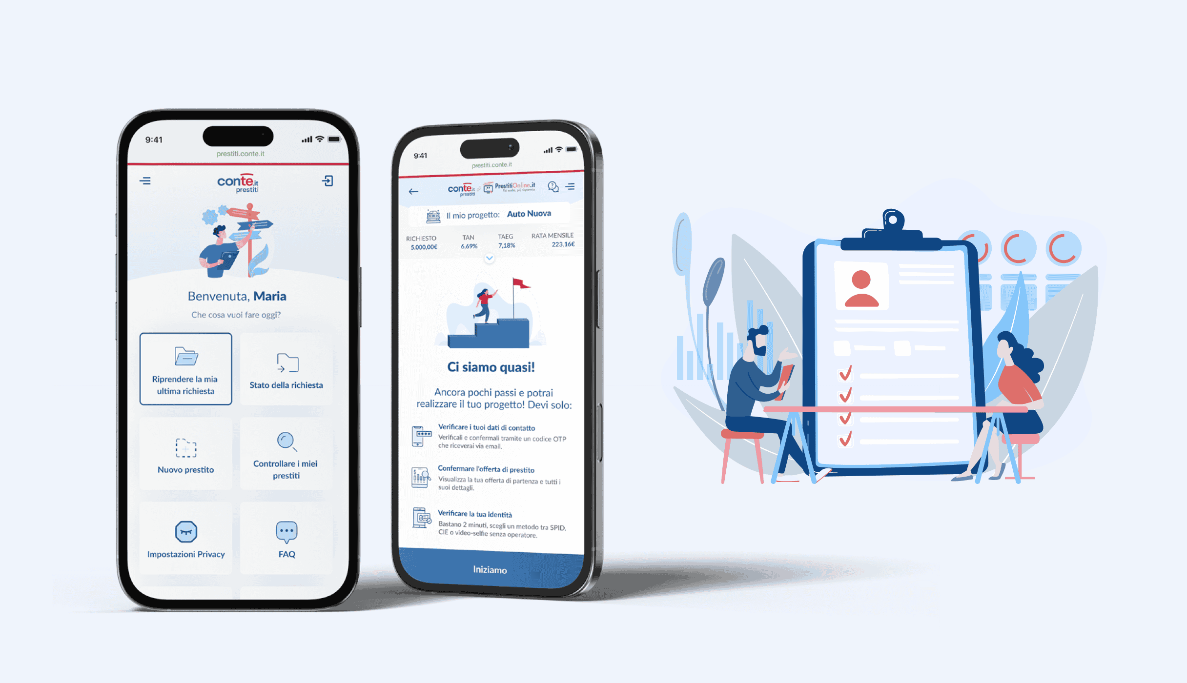 ConTe.it Prestiti nasce per superare i limiti dei processi tradizionali di richiesta di prestiti, ancora troppo lenti e basati su documentazione cartacea. L’obiettivo era realizzare una piattaforma semplice e totalmente digitale, che permettesse agli utenti di completare la richiesta in pochi minuti da qualsiasi dispositivo. La principale sfida consisteva nel ridurre drasticamente i tempi di valutazione del reddito e dell’affidabilità creditizia, garantendo al tempo stesso la massima sicurezza nell’identificazione e nella firma digitale. Tutto questo doveva tradursi in un’esperienza utente fluida, chiara e senza attriti, capace di ridurre lo stress e l’abbandono durante il percorso.