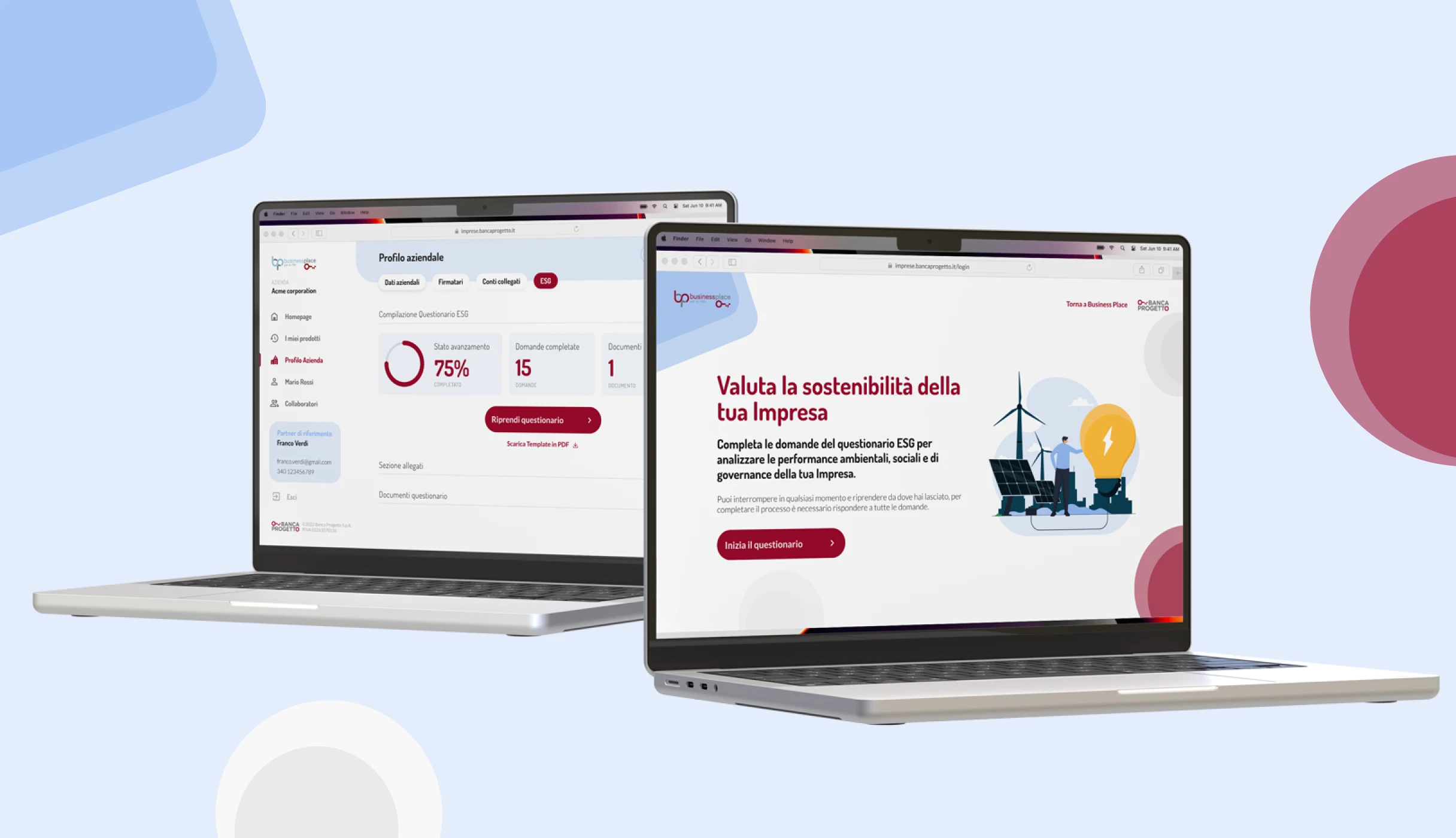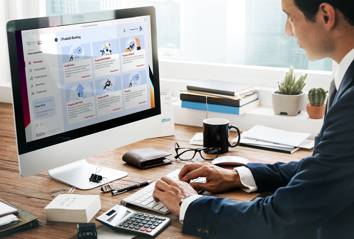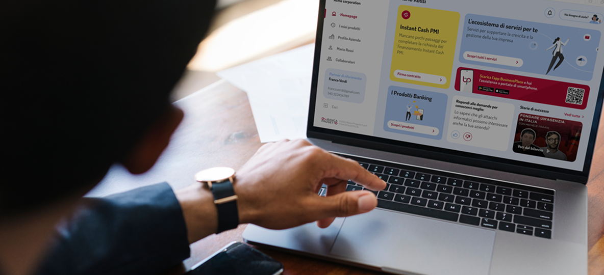 Banca Progetto è un istituto bancario italiano specializzato nel supporto alle piccole e medie imprese. Con Business Place, l’obiettivo era creare un punto unico per gestire finanziamenti, interfacciarsi con partner, firmare documenti digitalmente e accedere a servizi dedicati. Recentemente la piattaforma ha integrato un questionario di autovalutazione per la sostenibilità aziendale, utile a orientare le PMI in un contesto sempre più attento ai criteri ESG, rafforzando così il ruolo di Business Place come hub digitale centralizzato e strategico.