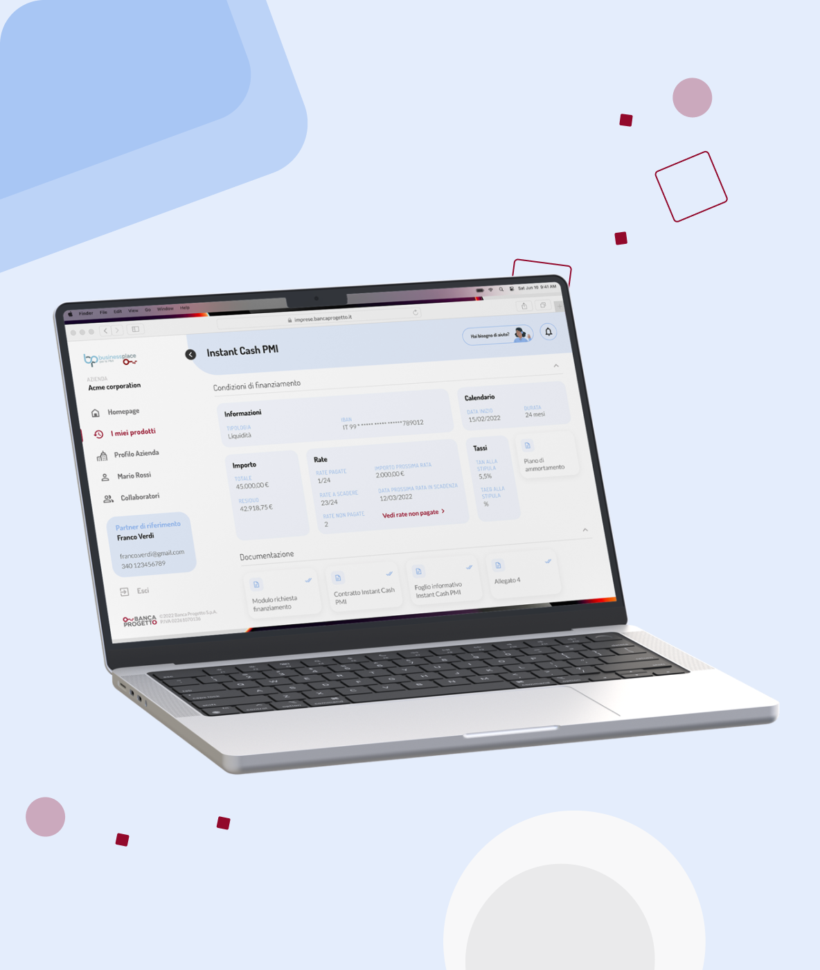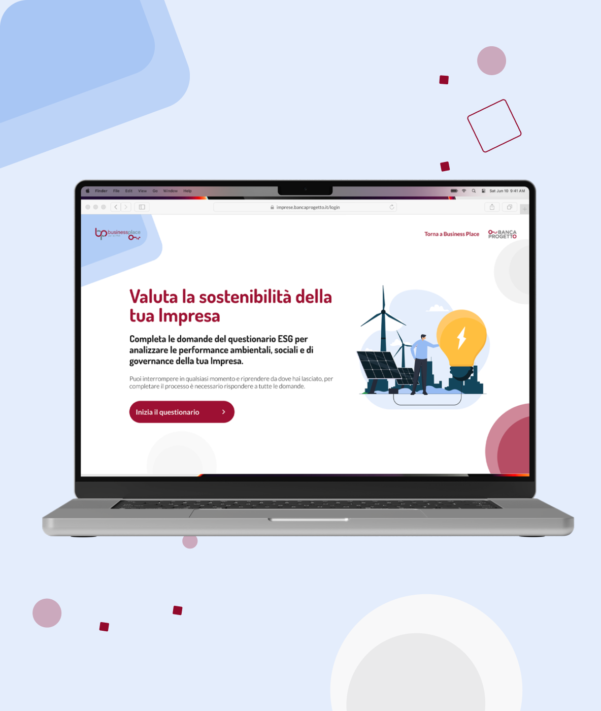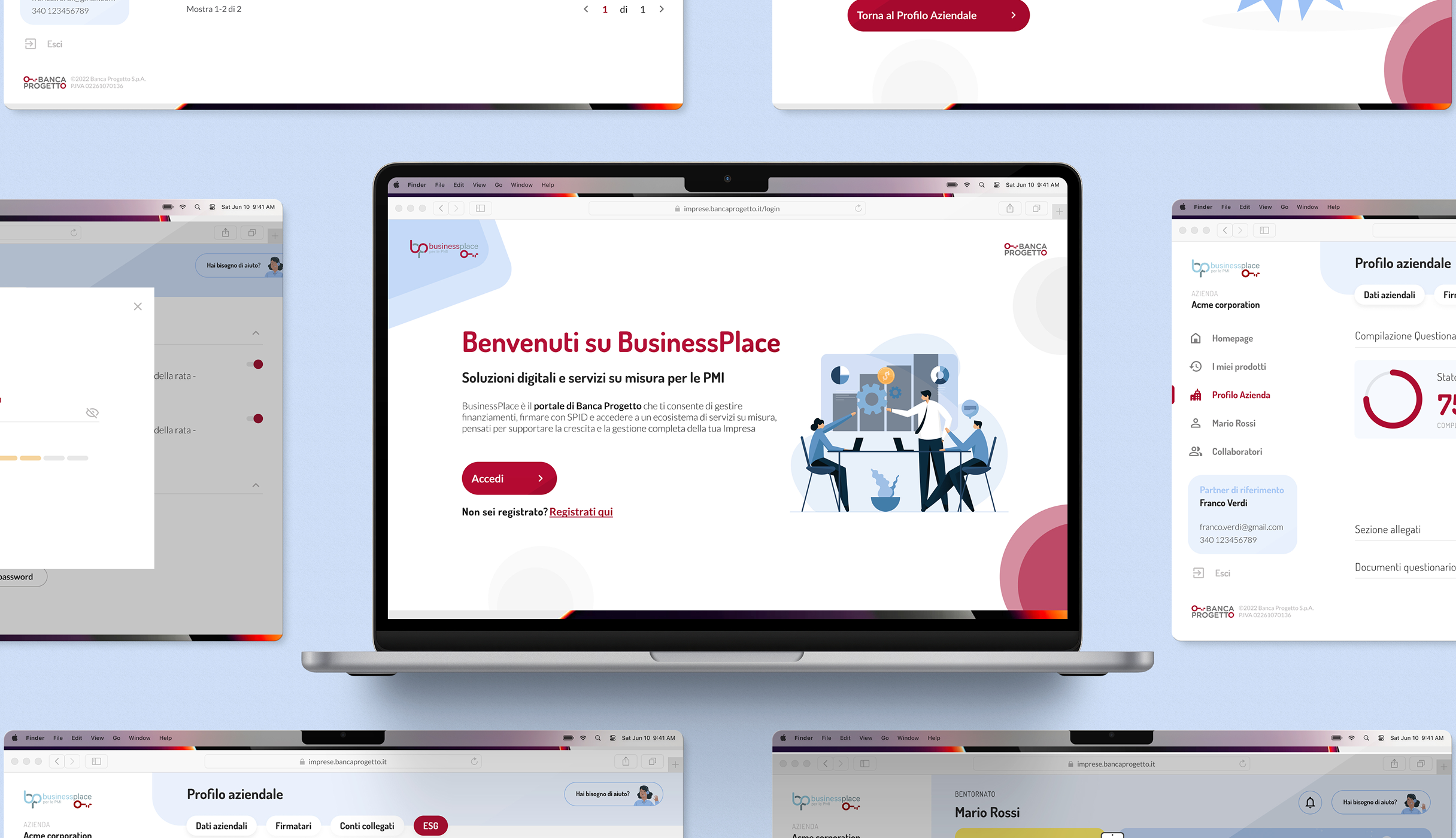 Banca Progetto è un istituto bancario italiano specializzato nel supporto alle piccole e medie imprese. Con Business Place, l’obiettivo era creare un punto unico per gestire finanziamenti, interfacciarsi con partner, firmare documenti digitalmente e accedere a servizi dedicati. Recentemente la piattaforma ha integrato un questionario di autovalutazione per la sostenibilità aziendale, utile a orientare le PMI in un contesto sempre più attento ai criteri ESG, rafforzando così il ruolo di Business Place come hub digitale centralizzato e strategico.